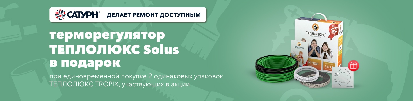 При единовременной покупке 2 одинаковых упаковок ТЕПЛОЛЮКС TROPIX, участвующих в акции, Вы получаете терморегулятор ТЕПЛОЛЮКС Solus в подарок!