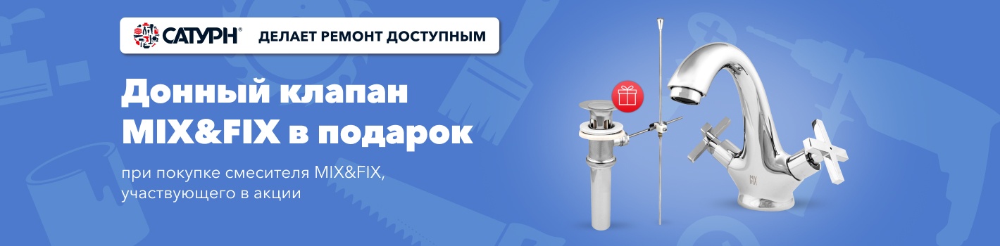 При покупке смесителя MIX&FIX, участвующего в акции, Вы получаете донный клапан MIX&FIX в подарок!