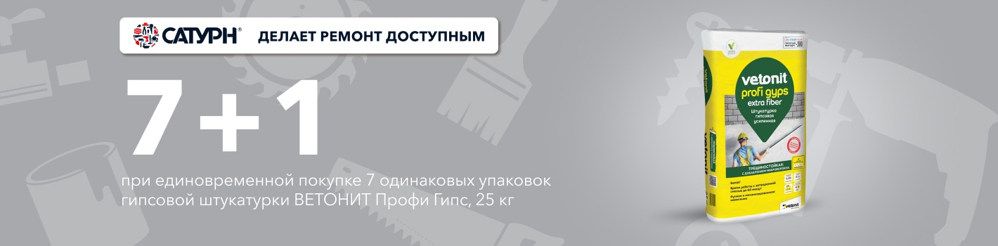При единовременной покупке 7 одинаковых упаковок гипсовой штукатурки ВЕТОНИТ Профи Гипс, 25 кг, 1 аналогичный товар Вы получаете в подарок!
