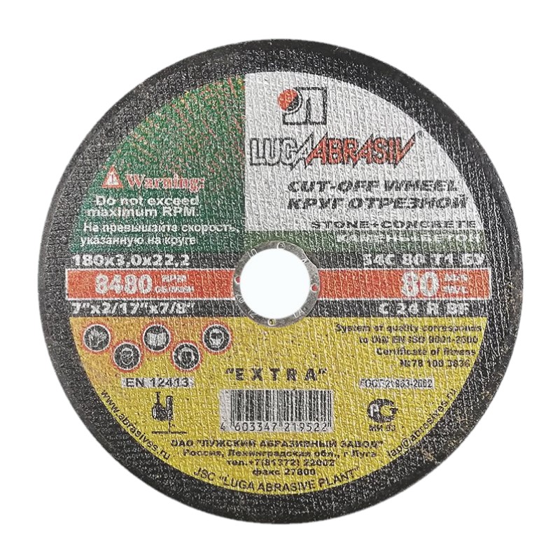 Диск отрезной Луга 180х3,0х22,2 мм по камню