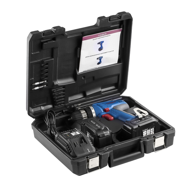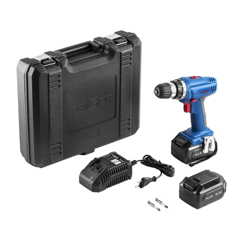 Дрель-шуруповерт Trigger 20002, 2 аккумулятора (1,5Ач), 10 мм, 14,4V, кейс