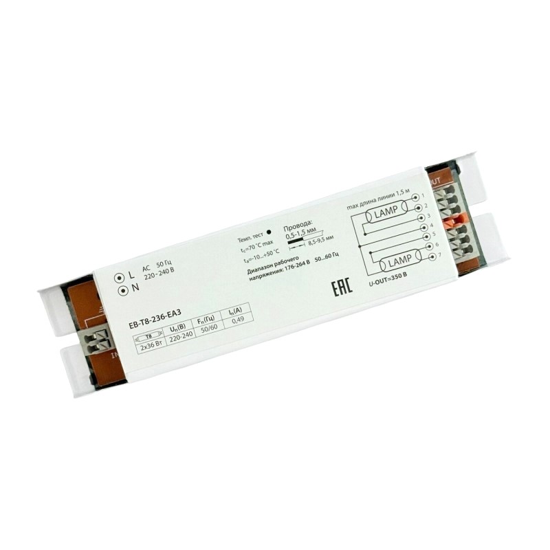 В строительном магазине Сатурн можно купить товар "Электронный балласт ЭПРА для люминесцентных ламп Т8 (2х36Вт), 230В, метал." по цене от 343 руб с доставкой за 2 часа по Екатеринбургу или оформить самовывоз.