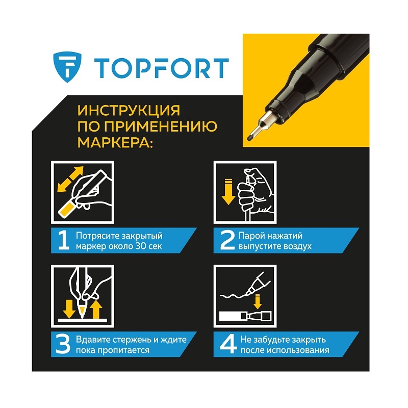 Предостережения: плотно закрывайте колпачок после применения, держать маркер вдали от источников тепла и воспламенения.