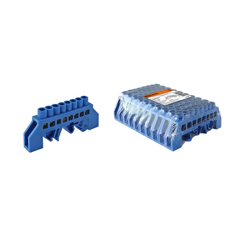 Шина "N" нулевая в изол. оболочке на DIN-рейку 125А, 8х12мм (8 отв.)
