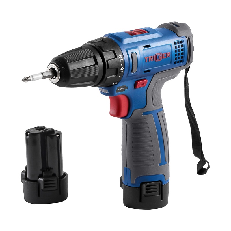Дрель-шуруповерт Trigger 20101, 2 аккумулятора Li-ion (1,5Ач), 12V, 10 мм, 25 Нм, обойма, кейс