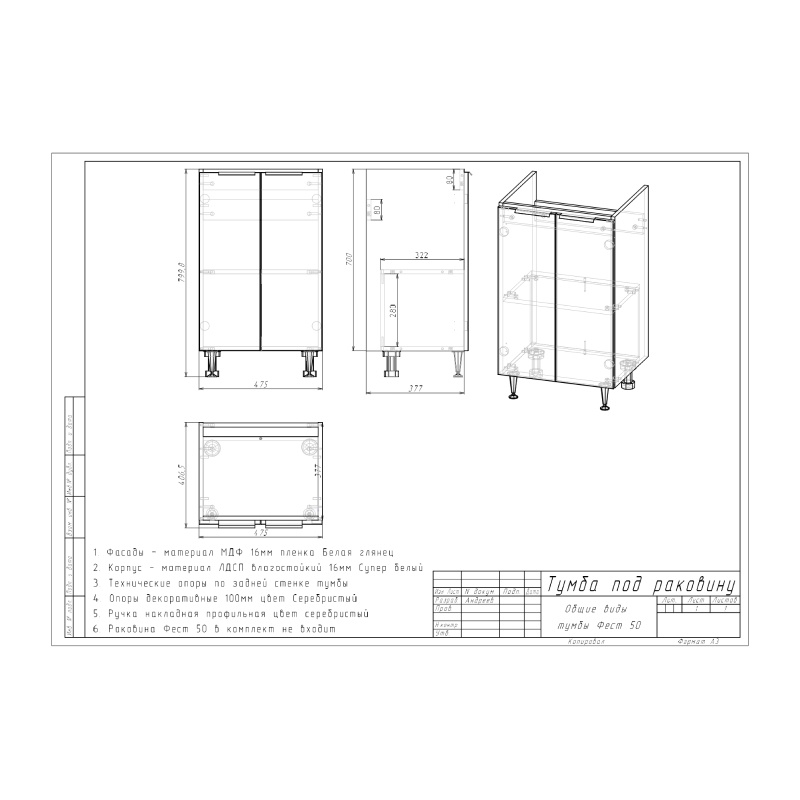 Тумба для ванной комнаты SKS Фест 50, 475х700х392 мм