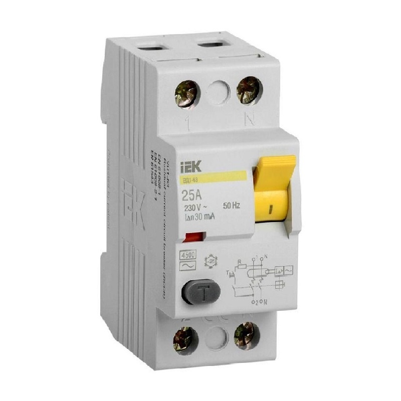 Устройство защитного отключения IEK Karat ВД1-63 — быстродействующий защитный выключатель, реагирующий на дифференциальный ток, без встроенной защиты от сверхтоков. Предназначен для защиты человека от поражения электрическим током при случайном непреднамеренном прикосновении к токоведущим частям электроустановок и предотвращает возникновение пожаров вследствие протекания токов утечки на землю. Не имеет собственного потребления электроэнергии и обладает высокой механической износостойкостью.