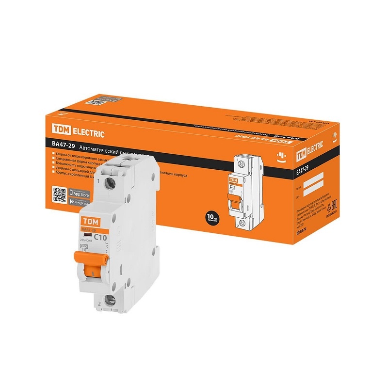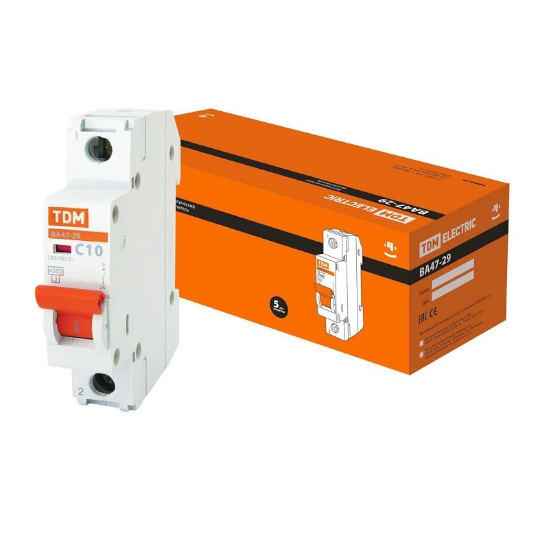 Выключатель автоматический TDM ВА 47-29, 4,5кА, С 10А, 1П