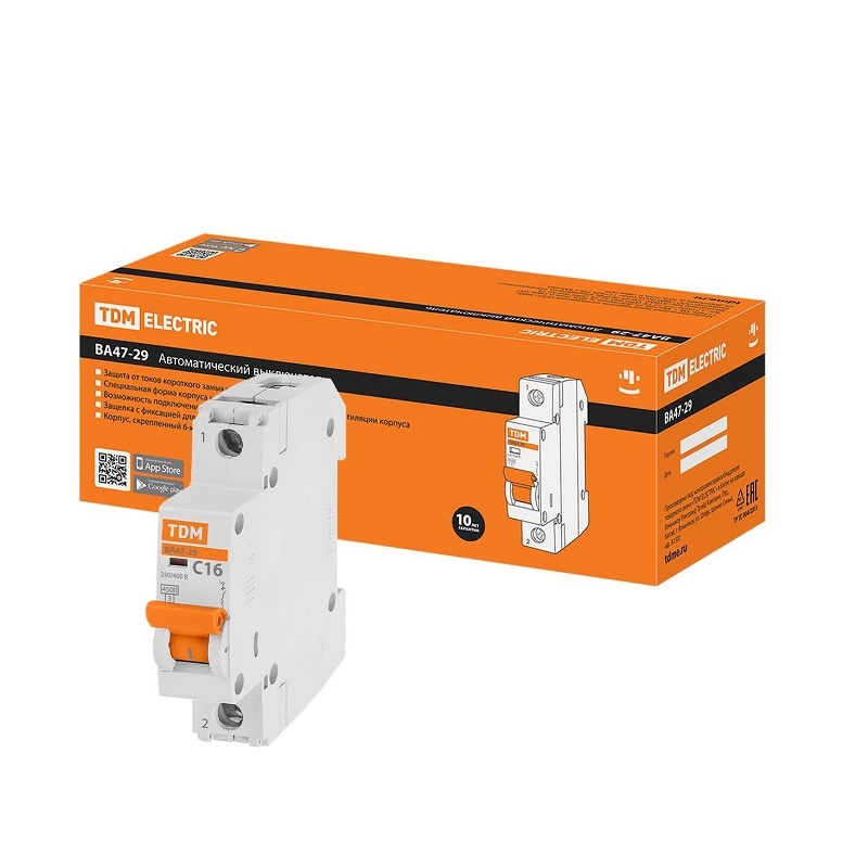 Выключатель автоматический TDM ВА 47-29, 4,5кА, С 16А, 1П