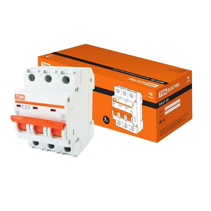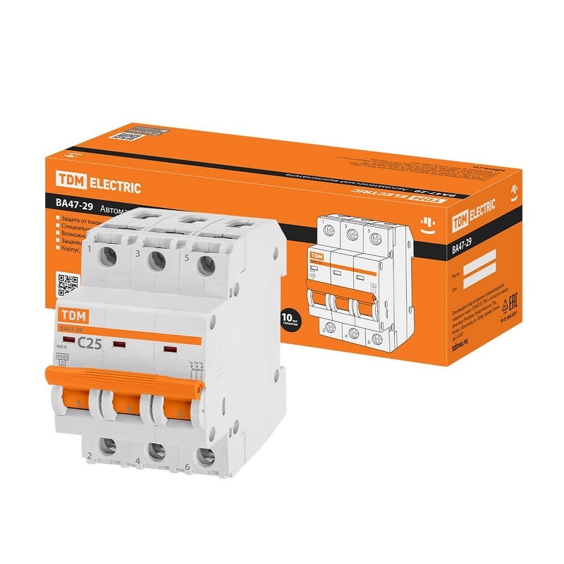 Выключатель автоматический TDM ВА 47-29, 4,5кА, С 25А, 3П