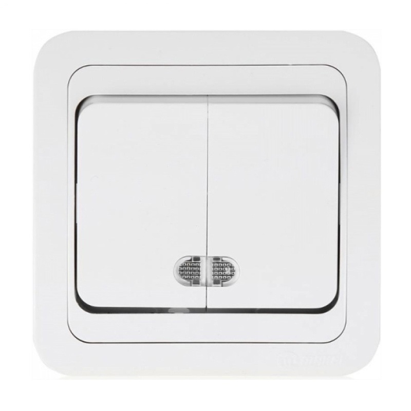 Выключатель с/у Mimoza 12023, 2 клавиши, с/инд, белый